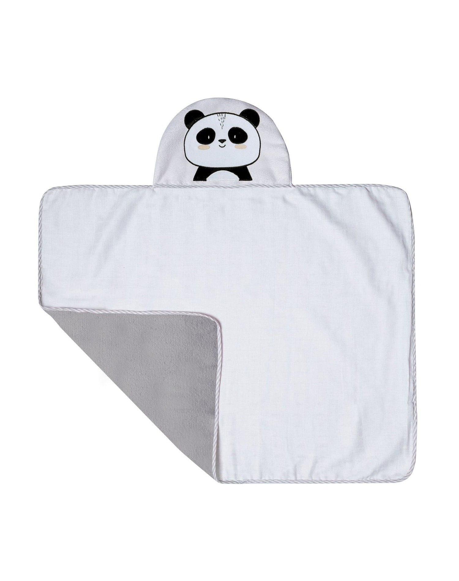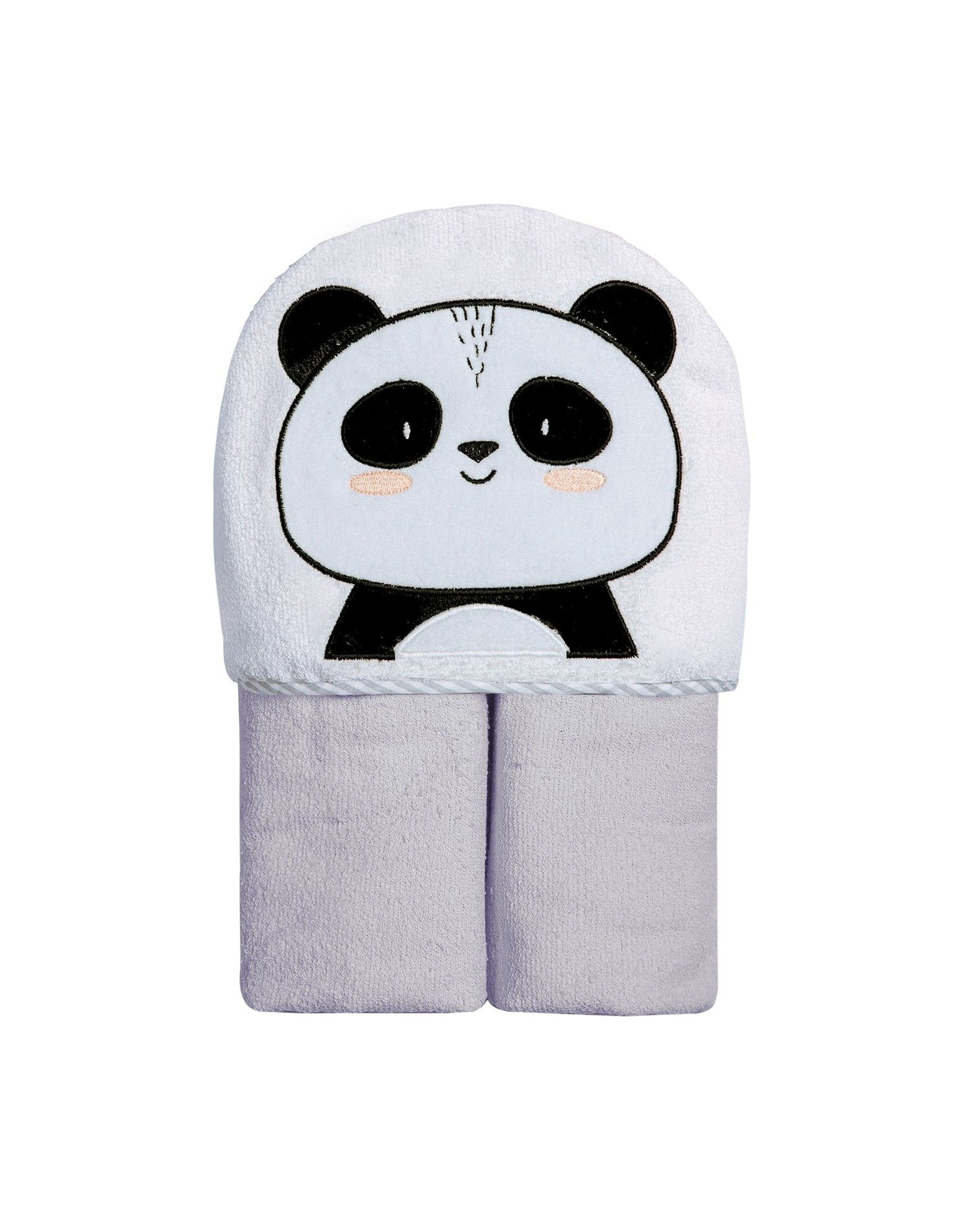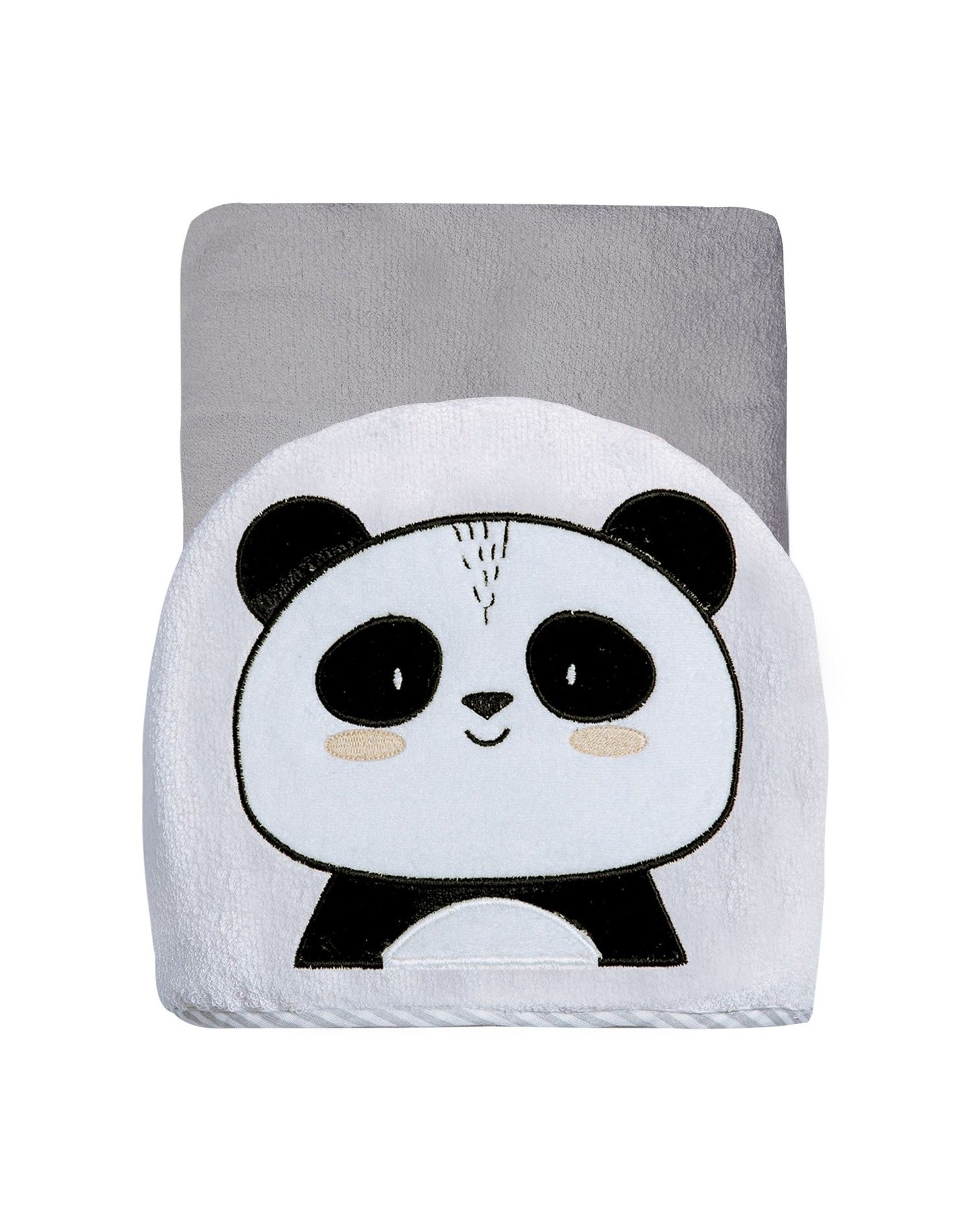 Toalha de Banho Forrada Cinza com capuz bordado de Panda Friends